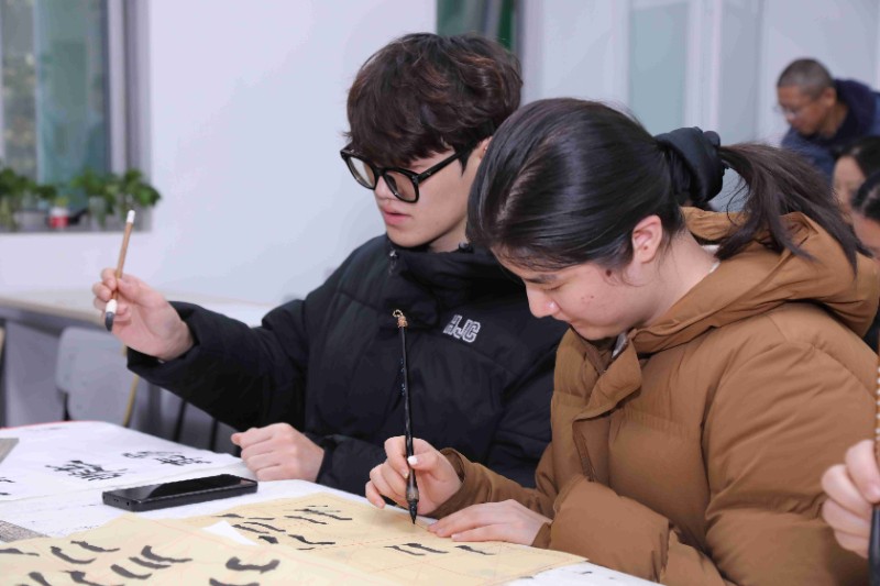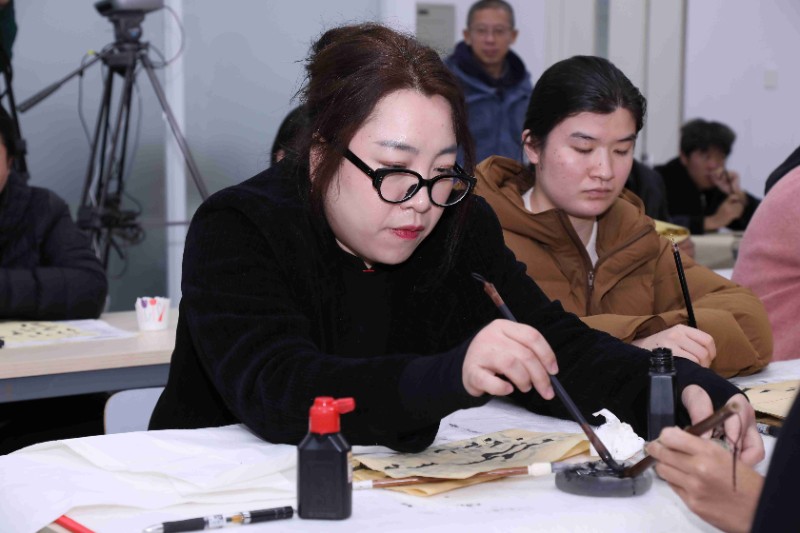 廖教授亲自指导将活动推向高潮。他从基础笔画入手,耐心细致地教导学员书写。在其示范与讲解下,每一点每一横都仿若有了灵魂,蕴含着《史晨碑》独特的韵味与古朴气息。在廖教授的言传身教下,学员们醍醐灌顶,获益良多,深刻领略到《史晨碑》书法艺术的博大精深,也更坚定了在书法之路上砥砺前行的决心。每周二下午,诚邀钟情国学书法的朋友们走进廖老师的工作室,共赏书法艺术的无尽魅力!