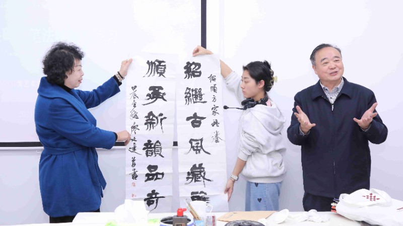 今天下午书法艺术工作室,廖廷建教授带来的史晨碑笔法精解与练习课程,堪称一场震撼心灵的书法盛宴。廖教授从史晨碑笔法的一撇一捺、一点一横讲起,这些看似简单的笔画,在他的讲解下仿佛有了生命。他的示范和演练,就像是一位绝世舞者在舞台上展现最优美的姿态,每一个动作都精准有力、韵味十足。在他的引导下,大家像是踏入了书法神秘花园的探索者,从对史晨碑书法一无所知的懵懂,逐渐走向深深着迷的热爱之境。 诚如欧阳修所说:“学书为乐”,廖教授让我们领悟到了史晨碑书法的乐趣所在,使我们真正沉浸其中,感受到这古老艺术的独特魅力,让史晨碑书法的魅力在我们心中种下了希望的种子,生根发芽。