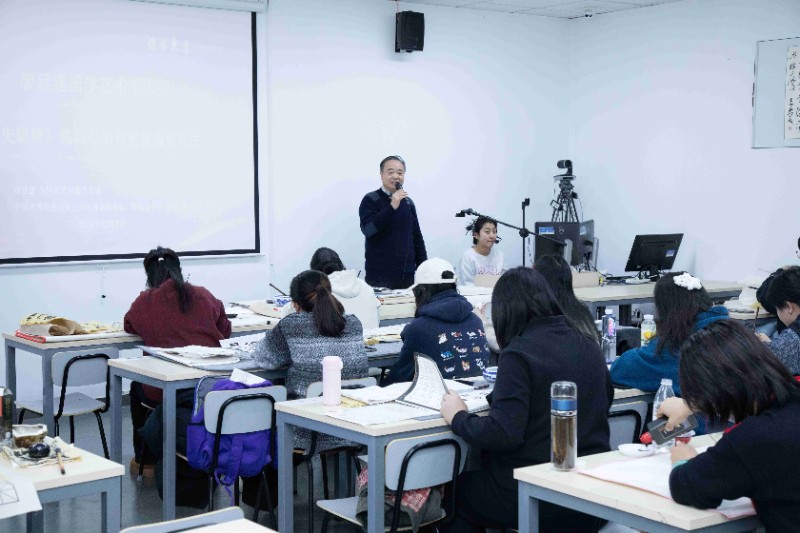 在昨天下午的开放大学国学艺术工作室中,一场国学雅韵的盛会精彩呈现。廖教授带来“国学经典之《汉书》史晨碑赏析与临帖讲座”。 而当诗词朗诵环节开启,廖教授声情并茂地吟诵起《青玉案·元夕》:“东风夜放花千树,更吹落、星如雨。宝马雕车香满路,凤箫声动,玉壶光转,一夜鱼龙舞。 蛾儿雪柳黄金缕,笑语盈盈暗香去。众里寻他千百度,蓦然回首,那人却在,灯火阑珊处。”其嗓音醇厚,语调抑扬顿挫。于“东风夜放花千树”处,似能瞧见元宵盛景的繁花似锦、烟火绚烂;至“众里寻他千百度”时,又将那份追寻的执着与怅惘娓娓道来;待“蓦然回首,那人却在,灯火阑珊处”,则如灯火骤明,情感的波澜直击人心,令在场听众皆仿若置身于那灯火摇曳的古街,与词人共品这千年的幽情雅韵,沉浸于国学经典的无尽魅力之中,久久难以忘怀。