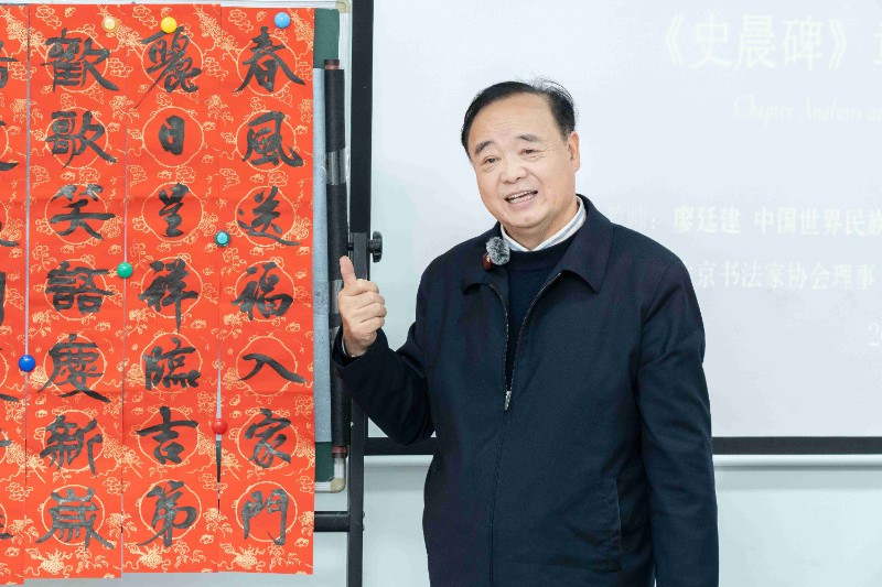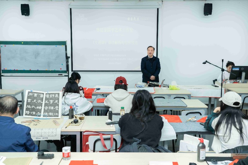 今天下午,国艺东方·汇佳开放大学廖廷建国学艺术工作室的《史晨碑》技法课程,廖教授带来了一场精彩绝伦的书法与国学艺书的精美融合课程。课上,廖教授借“故学书之法,非口传心授,不得其精”细致讲解临帖要点,强调要精准把握笔画基础,像中锋行笔得扎实掌握,字的结构要端庄平正、疏密匀称,章法需体会疏朗和谐之美。廖教授还谈及书法与诸多元素的关联,指出女性书写往往有着如锦绣文章般的细腻情韵,尽显温婉雅致;男性书写多追求豪迈大气,像毛泽东的《沁园春·雪》,那字里行间尽显豪迈胸怀,气吞山河之势跃然纸上,值得细细品味与传承,激励大家书写有情怀、有力量的文字。课程结束时,廖教授和高福廷书记同步进行“福”字示范。只见他俩沉稳起笔,廖教授笔法尽显沉稳老到,笔下“福”字古朴厚重,结构严谨又灵动,透着深厚功底,融入《史晨碑》韵味;高书记笔力刚劲,“福”字线条流畅洒脱,别具一格。这一场景让在场爱好者大饱眼福,激励众人在书法天地里不断探索前行。课程结束时,廖教授对 3 个月的书法课进行了总结。他指出,书法与国学密不可分,其中蕴含着丰富的诗词和名人故事。高书记对廖老师的书法及讲课给予了高度赞赏。最后,现场掌声雷动,大家都期待着能继续跟随廖教授学习国学书法艺术。
