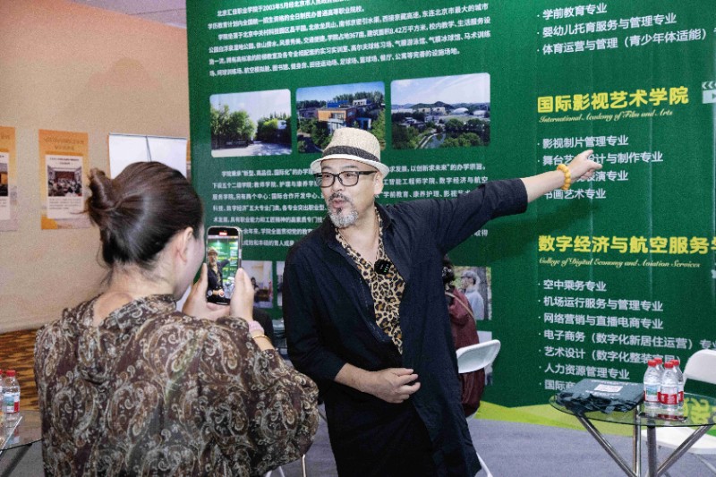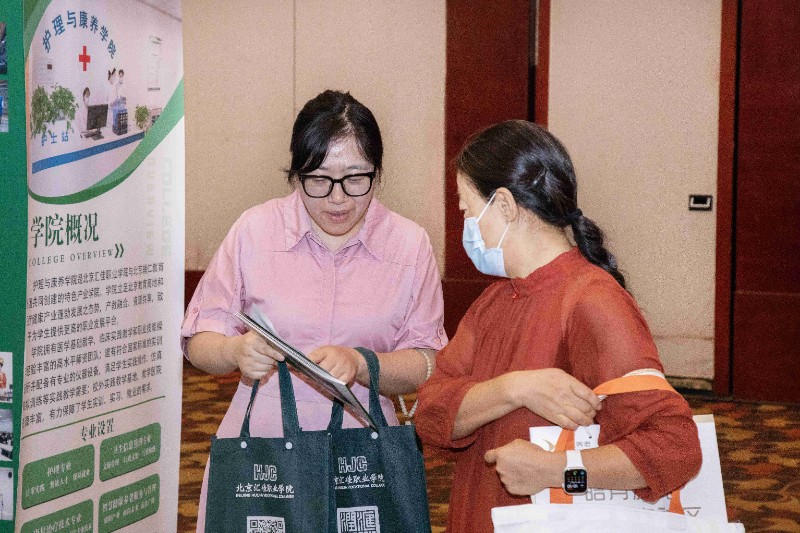 多年来,学校坚持“以质量求生存、以特色求发展、以创新求未来”的办学理念,围绕社会需求精准培育人才,累计为学前教育、影视创作、康养护理、航空服务、人工智能等行业输送数万名实用型人才。此次峰会现场,学校通过全景展板系统展示五大二级学院的办学成果,尤其突出跨学科协同优势——以护理与康养学院的老年护理专业为核心,联动开放大学开设书法、钢琴、声乐、绘画等中老年特色课程,形成“专业培育+惠民服务”的养老服务联动模式,直观呈现多维度赋能养老事业的综合办学特色,为后续招生咨询、专业展示奠定坚实根基。