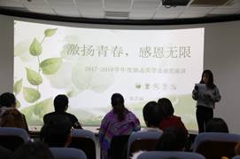 文创系“励志、感恩”演讲比赛于2018年12月20日在环屏教室开展,全系9名获得国家励志奖学金的同学上台演讲,各班班委成员和所有获得国家助学金的同学参会。此次演讲比赛的评委老师有学生处袁立君处长、系团总支书记张志君、系学生工作负责人孙玉君、还有党办主任文创系辅导员杨永琴。9位获得国家励志奖学金的同学演讲比赛分别获得一、二、三等奖,其中获得一等奖的是赵德浩、线金辉;获得二等奖的是冯文钰、张艺涵、杨传盛;获得三等奖的是李浩凯、薛娅辉、张靖婕、黄超。通过声情并茂、激情澎湃的演讲,让在场的学生们懂得我们应该学会感恩、怎样去感恩。活动期间,同学们热情高涨,时而掌声如潮,时而热泪盈眶。同学们认识到,国家奖学金是激励贫困学生奋发向上,努力学习的莫大鼓励。
